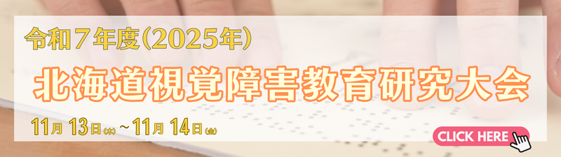 ・令和7年度(2025年度)北海道視覚障害教育研究大会ページを開設しました。本研究大会は11月13~14日に本校にて開催いたします。皆様のご参加をお待ちしております。