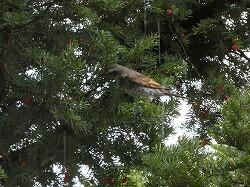 校長室前のイチイの木には、今朝、ツグミの群れがやって来て、盛んに赤い実をついばんでいました。