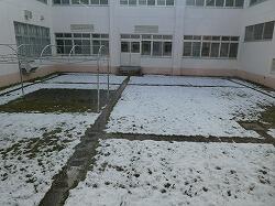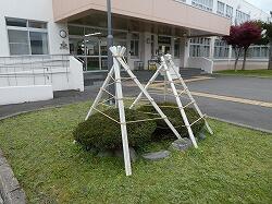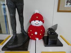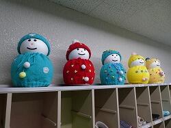 学校前の庭木も冬囲いが施され、児童生徒玄関の雪だるまたちも、いつの間にか冬の装いに衣替えしていました。