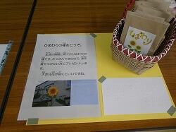 さて現在、児童生徒玄関前では、小学部4年生と6年生の児童が育てた「ひまわり」の種が、かわいらしいイラスト付きの小袋に入れられ、配られています。