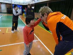 リタさんは子どもたち一人ひとりに声をかけ、好プレーにはハイタッチを交わすなど、すぐに打ち解けた様子でした。