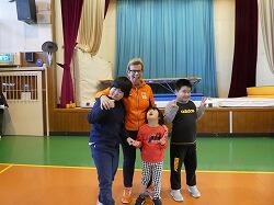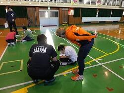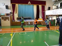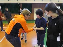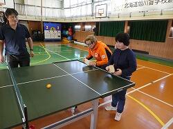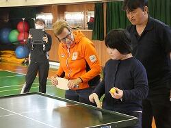 小学部の児童とは「サウンドテーブルテニス」に取り組み、中学部の生徒とは一緒にランニングやサッカーを楽しみました。