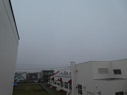 日が昇るにつれて少しずつ霧は晴れてきましたが、依然として空は真っ白です。