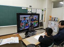 さて、本日は定例となっている4校オンライン交流学習の日。「道徳」の授業でした。