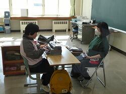 点字の学習では、点字タイプライター(パーキンスブレイラー)を使い、自分の名前を打つ活動に取り組みました。
