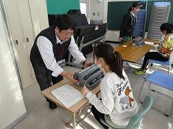 本校の先生方の指導を受けながら、点字の名刺を一人一人が完成させることができていました。