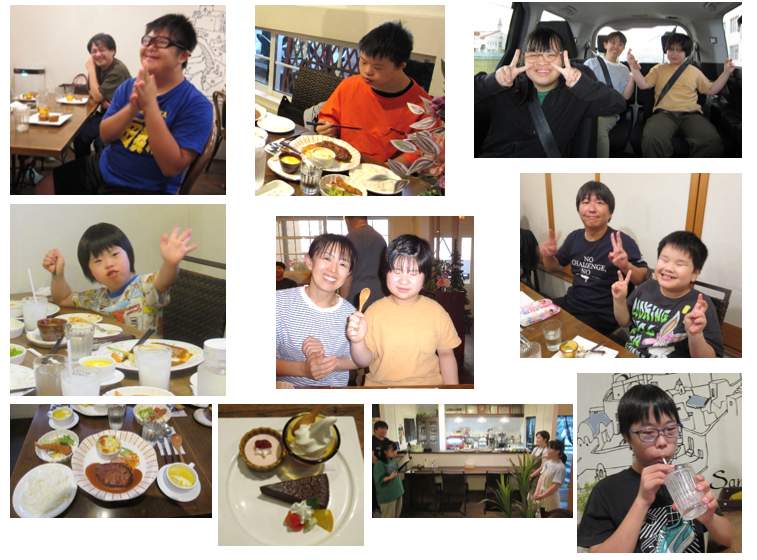 子ども達みんな(私達職員も)が楽しみにしている食事会が9月17日にありました。今年も例年お世話になっている「氣くらし」さんに行ってきました。移動中の子どもたちからはワクワク感が伝わってきました。メニューは今回も豪華でハンバーグステーキ、ポテトグラタンと海老フライ、かぼちゃのスープなど、デザートはソフトクリーム、ガトーショコラでした。