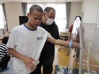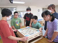 昨年度までの舎祭からお楽しみ会に名称を変え、寄宿舎プレイルームで舎室対抗のゲームを行いました。万歩計をつけた自作のスティックを制限時間にどれだけたくさん振れるか競う『フリフリゲーム』、穴にどれだけたくさんビー玉を入れることができるか競う『スマートボール』と2種目行い会場は大いに盛り上がっていました。ゲーム後は、順位が高い舎室からくじ引きをして景品・お菓子をいただき、会を終了しました。