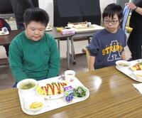 オムライス・スープ・フライドポテト・海藻サラダ・ブドウジュースという豪華なラインナップ!